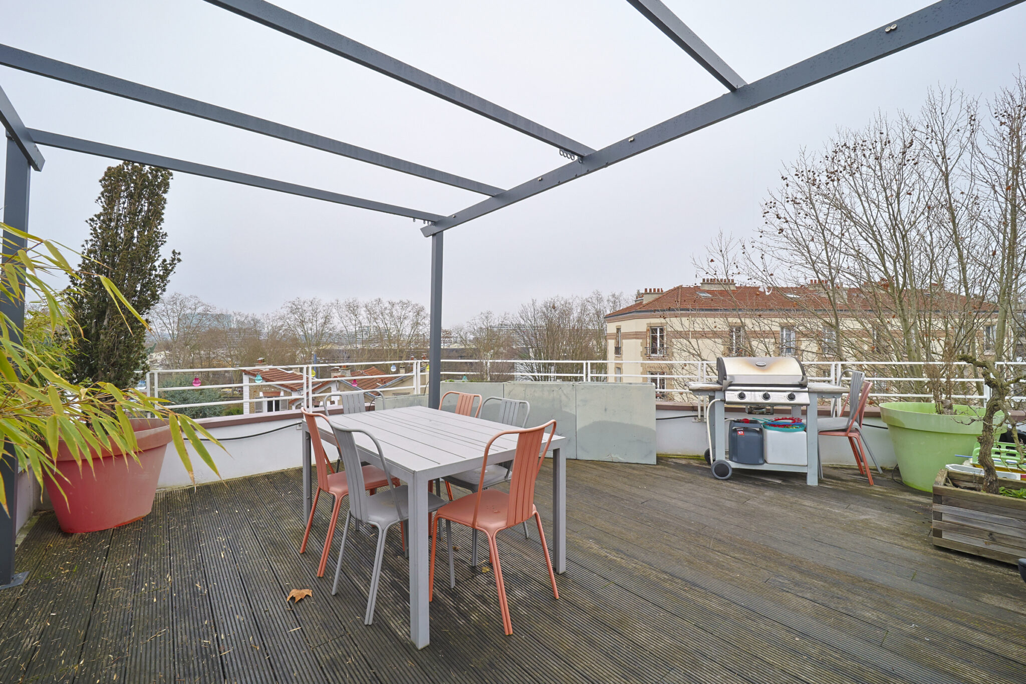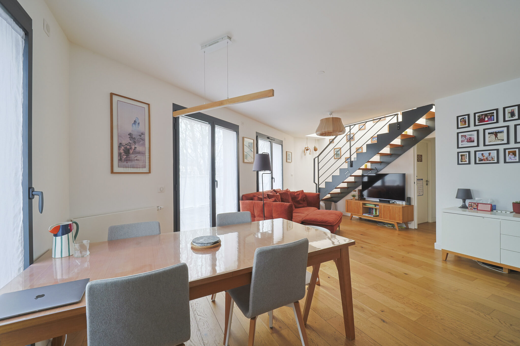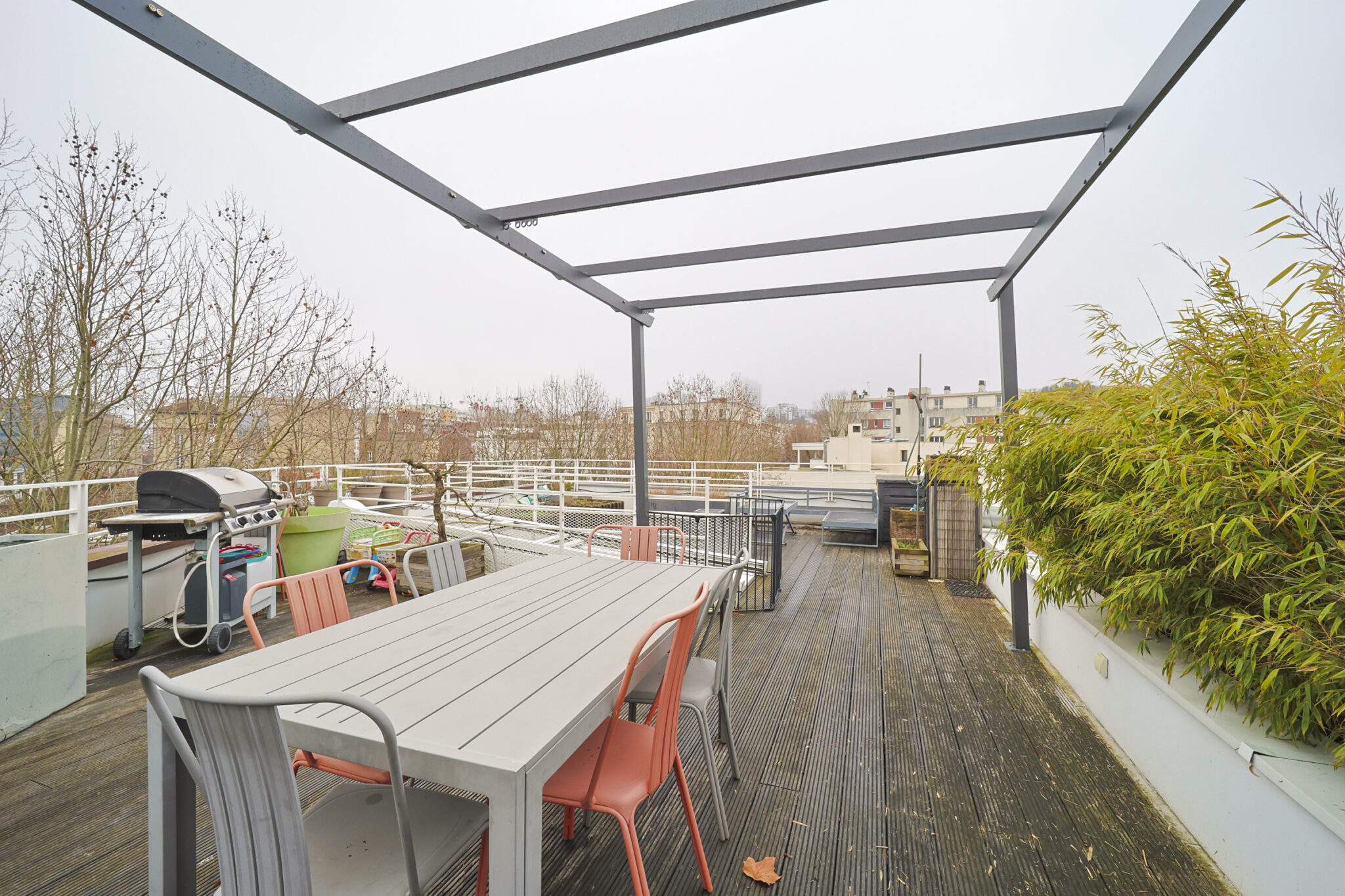 Cet appartement est ainsi composé : D’une entrée avec rangement, d’un double séjour, d’une cuisine équipée donnant sur une terrasse de 26m2, de deux chambres, une d’une salle d’eau, d’un wc, d’un rooftop de 57m2. Appartement de 3 pièces à Issy-Les-Moulineaux.